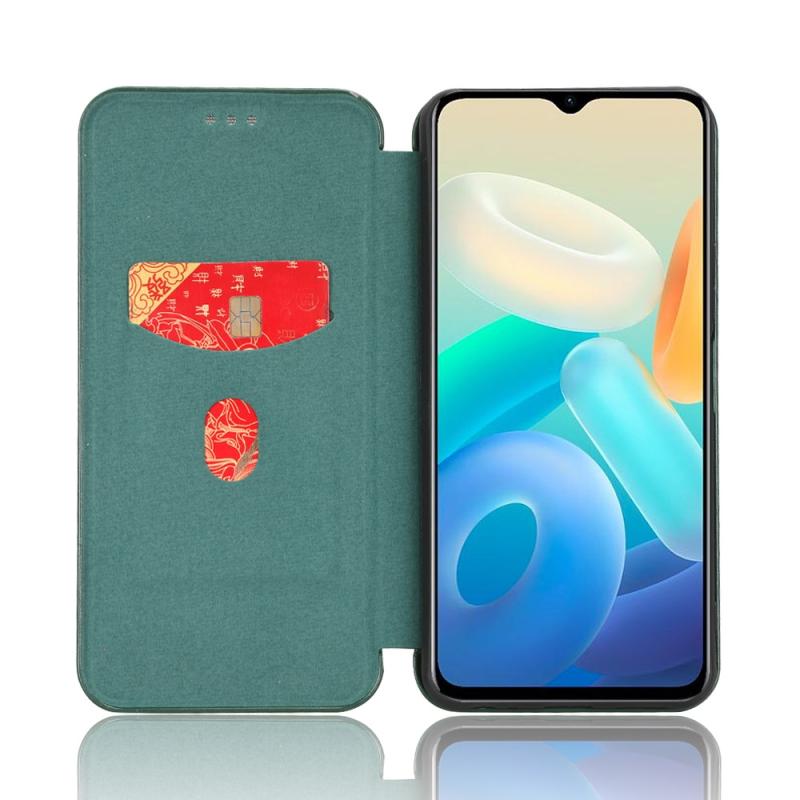 Θήκη τηλεφώνου από δέρμα με υφή ανθρακονημάτων για vivo Y77 5G (πράσινο)
