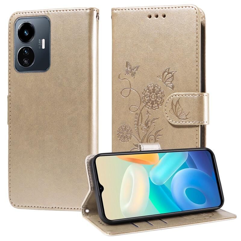 Θήκη τηλεφώνου δερμάτινη με ανάγλυφα λουλούδια και πεταλούδες για vivo Y77 5G (Μωβ)