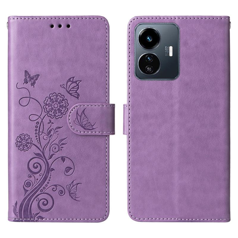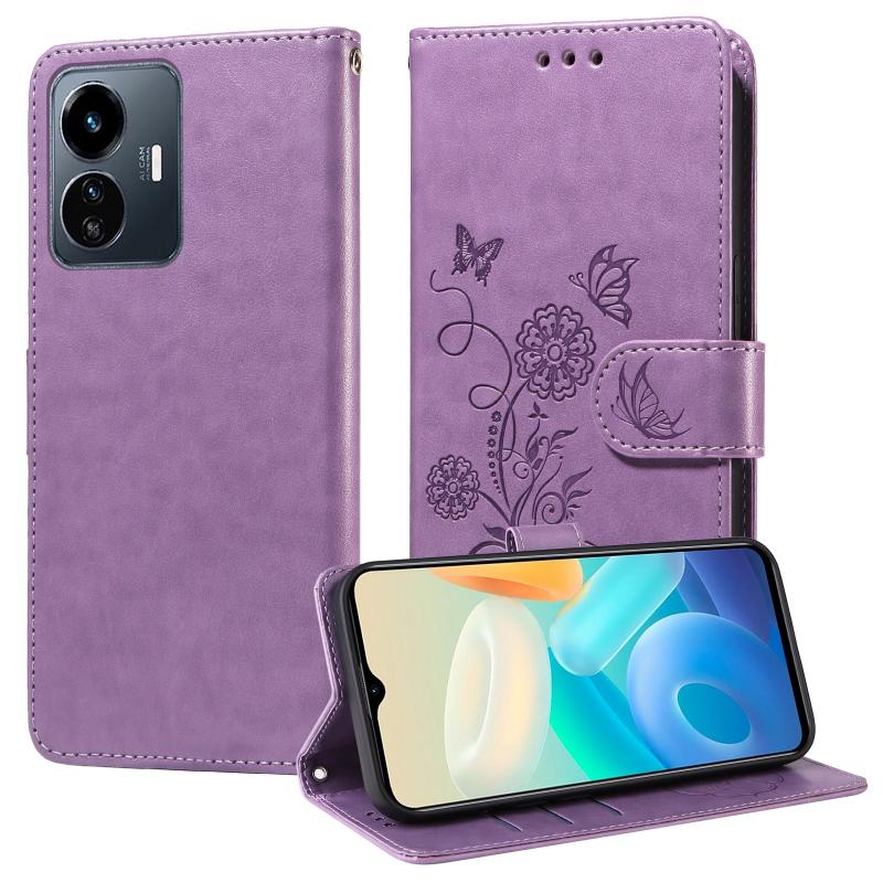 For vivo Y77 5G Embossed Butterfly Flowers Leather Phone Case(Purple)
