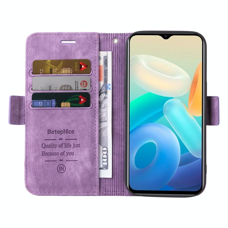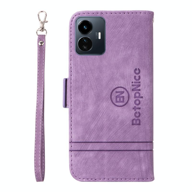 Για vivo Y77 5G Global BETOPNICE Δερμάτινη θήκη τηλεφώνου με διπλή αγκράφα (Μωβ) (Μωβ)