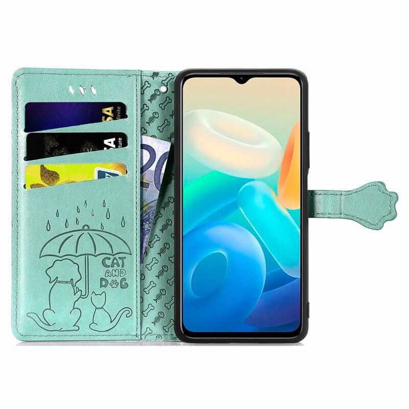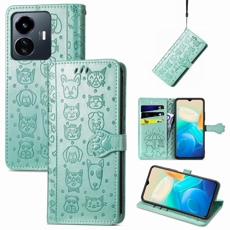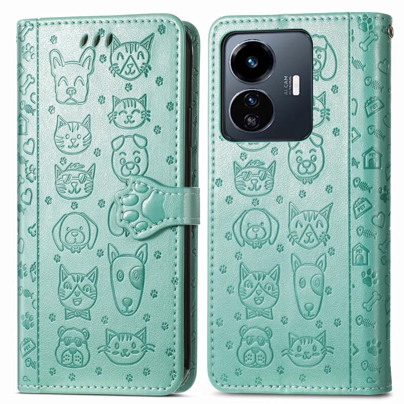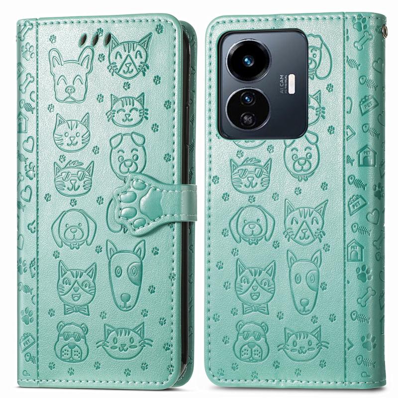 For vivo Y77 5G Global Cat and Dog Embossed Leather Phone Case(Green)