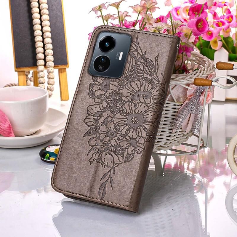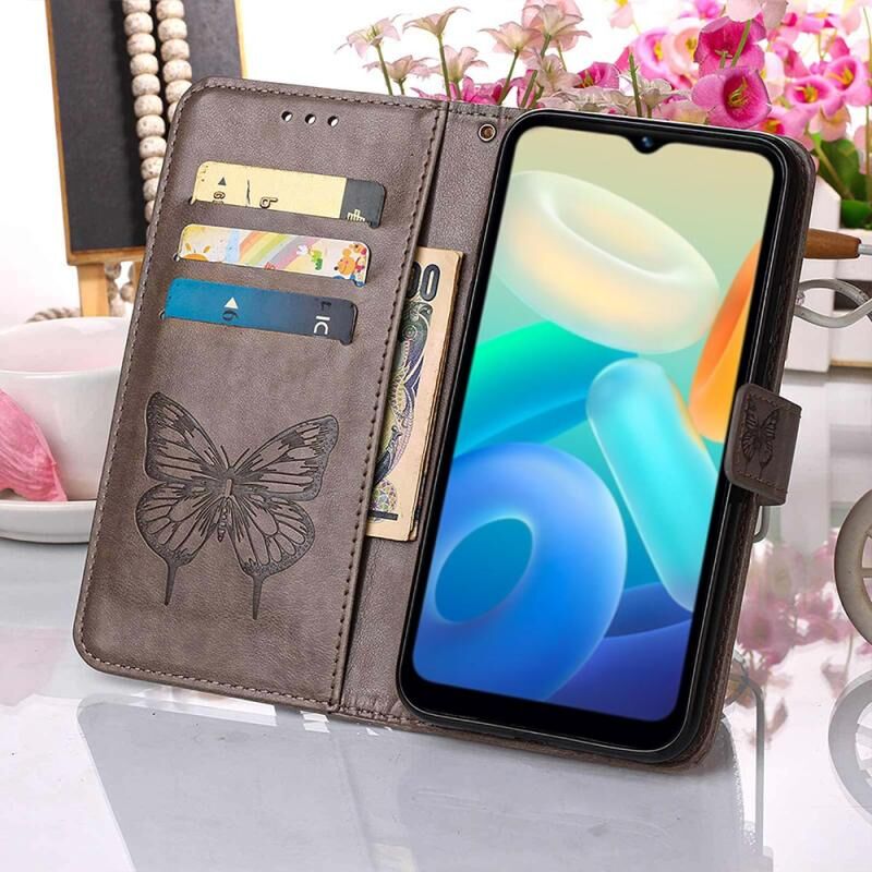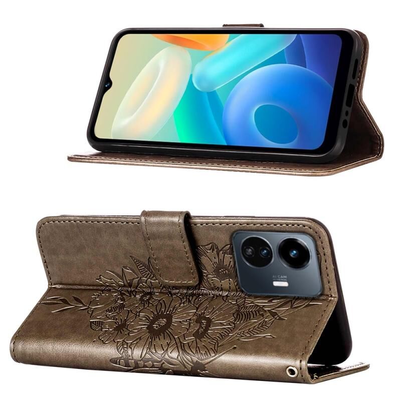 Θήκη τηλεφώνου από δέρμα με ανάγλυφο σχέδιο πεταλούδας και λειτουργία flip για vivo Y77 5G (Μπλε)