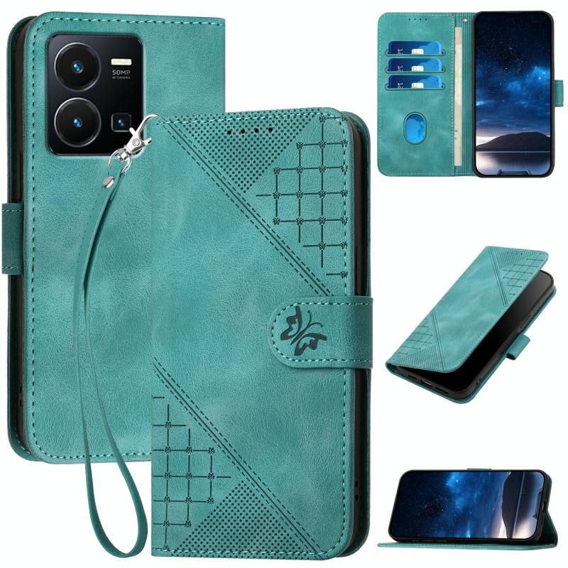 Θήκη τηλεφώνου δερμάτινη με ανάγλυφο σχέδιο πεταλούδας και κορδόνι για vivo Y77 5G (Ανοιχτό μπλε)