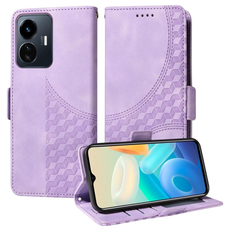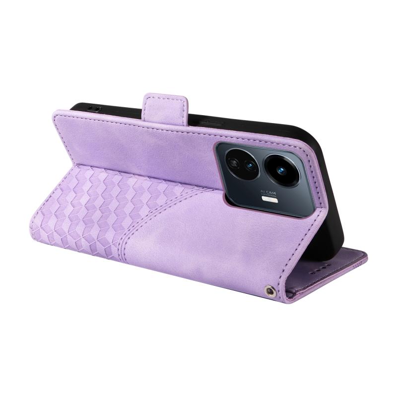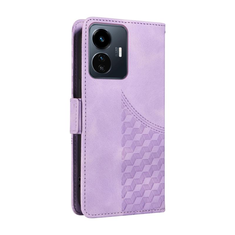 For vivo Y77 5G / iQOO Z6 Lite Global Embossed Rhombus Starry Leather Phone Case(Purple)