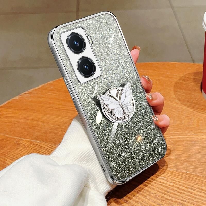 Για το vivo Y77 5G Επιμεταλλωμένο διαβάθμιση Glitter πεταλούδα κάτοχος TPU τηλέφωνο υπόθεση (Ασημί)