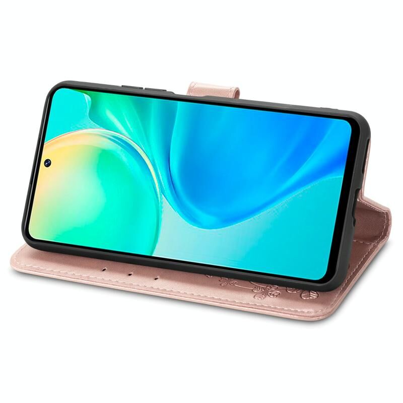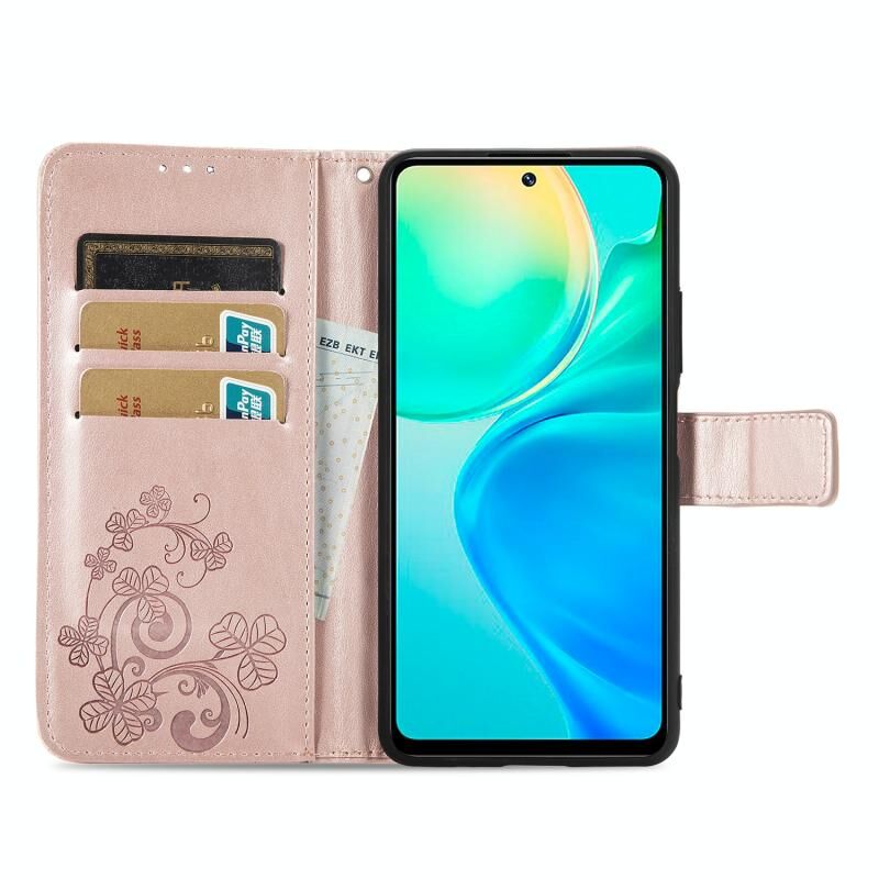 Για vivo Y77 (Κίνα) Four-leaf κούμπωμα ανάγλυφο πόρπη δερμάτινη θήκη τηλεφώνου (Χρυσός)