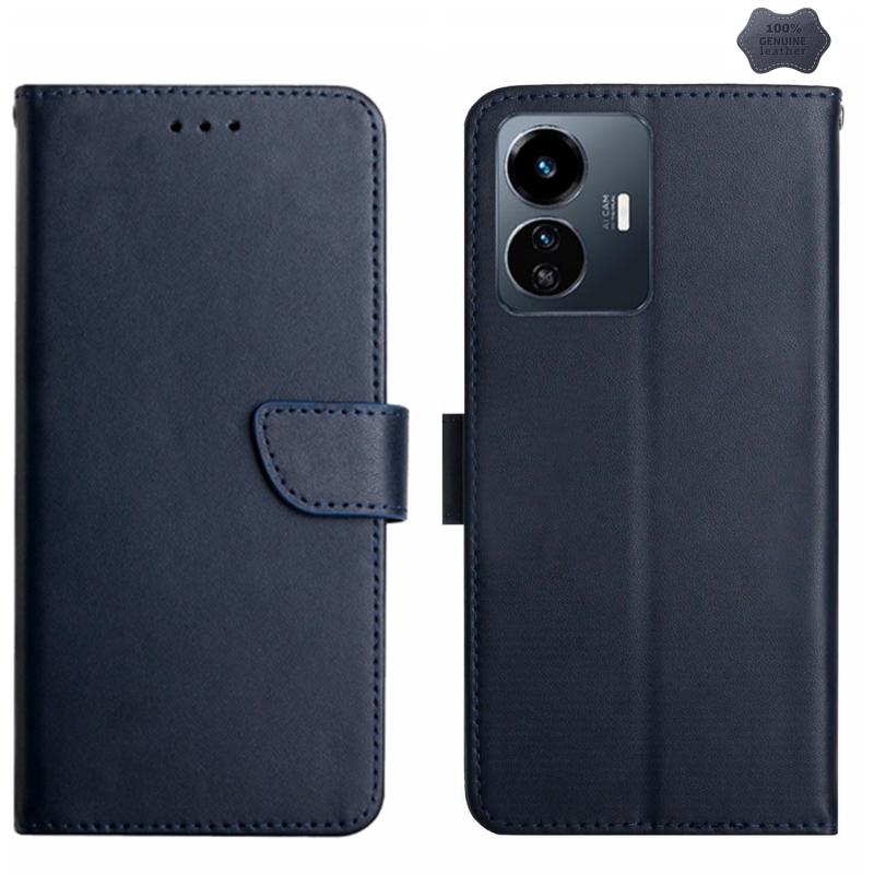 For vivo Y77E 5G Genuine Leather Fingerprint-proof Flip Phone Case(Blue)