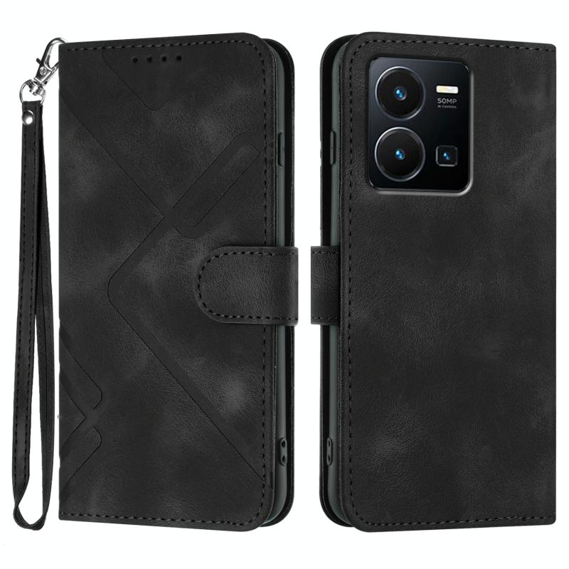 For vivo Y77e 5G Line Pattern Skin Feel Leather Phone Case(Black)