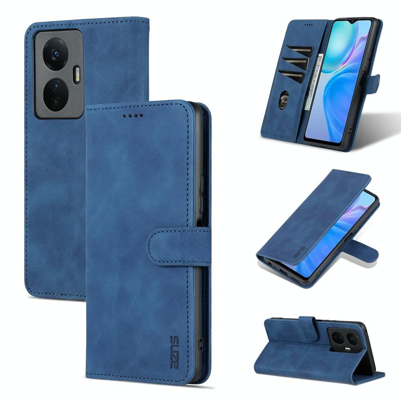 Θήκη τηλεφώνου δέρματος με οριζόντιο άνοιγμα για vivo Y77e/Y77 5G Global AZNS με υφή δέρματος μοσχαριού και αίσθηση (Μπλε)