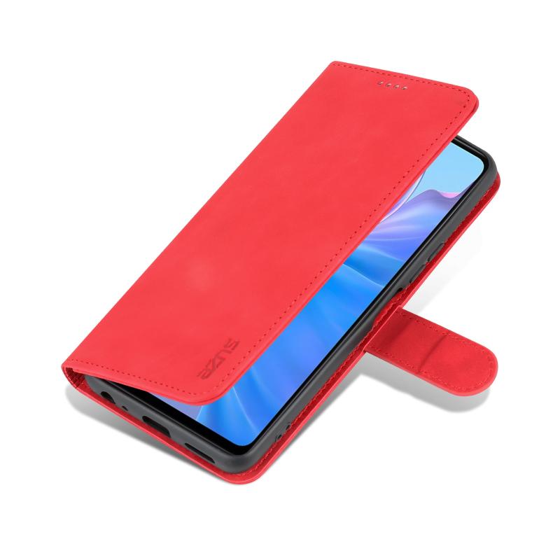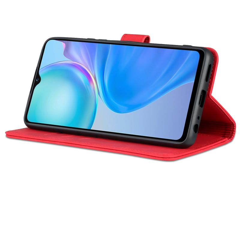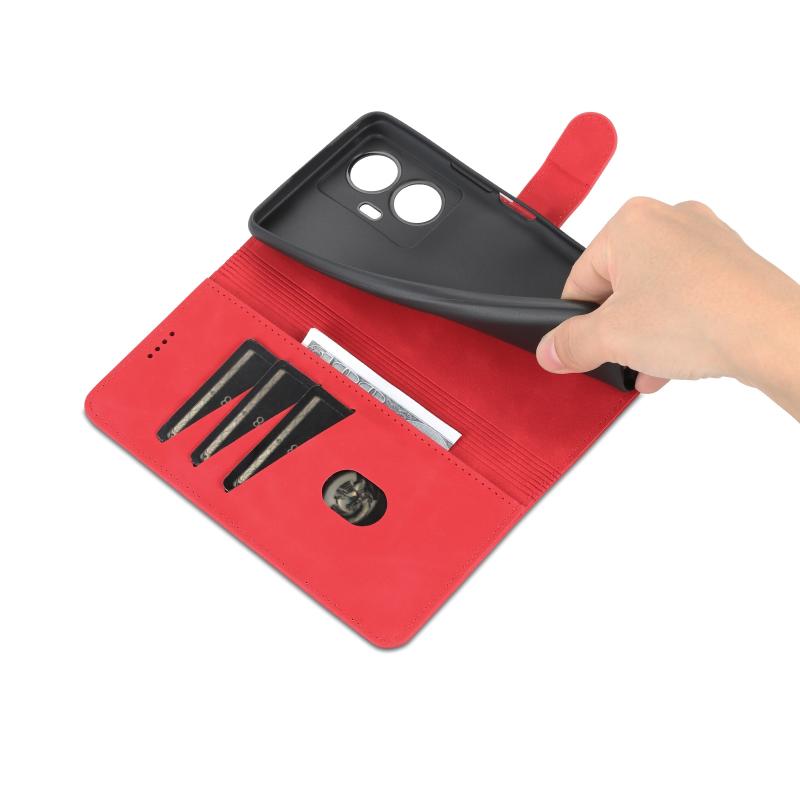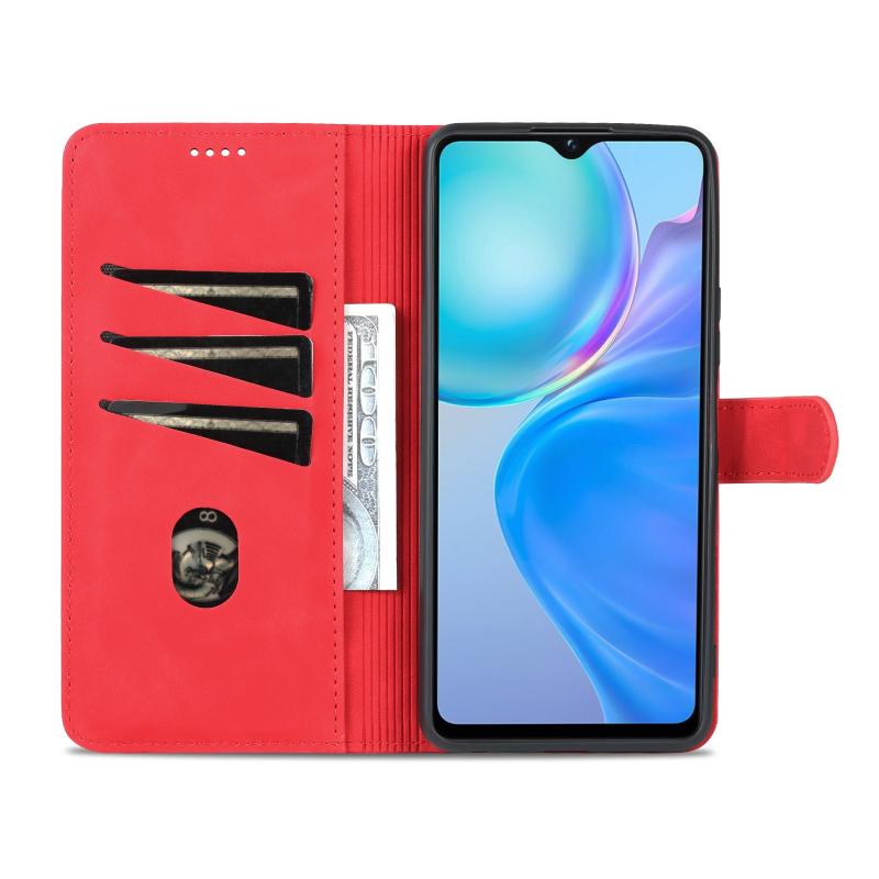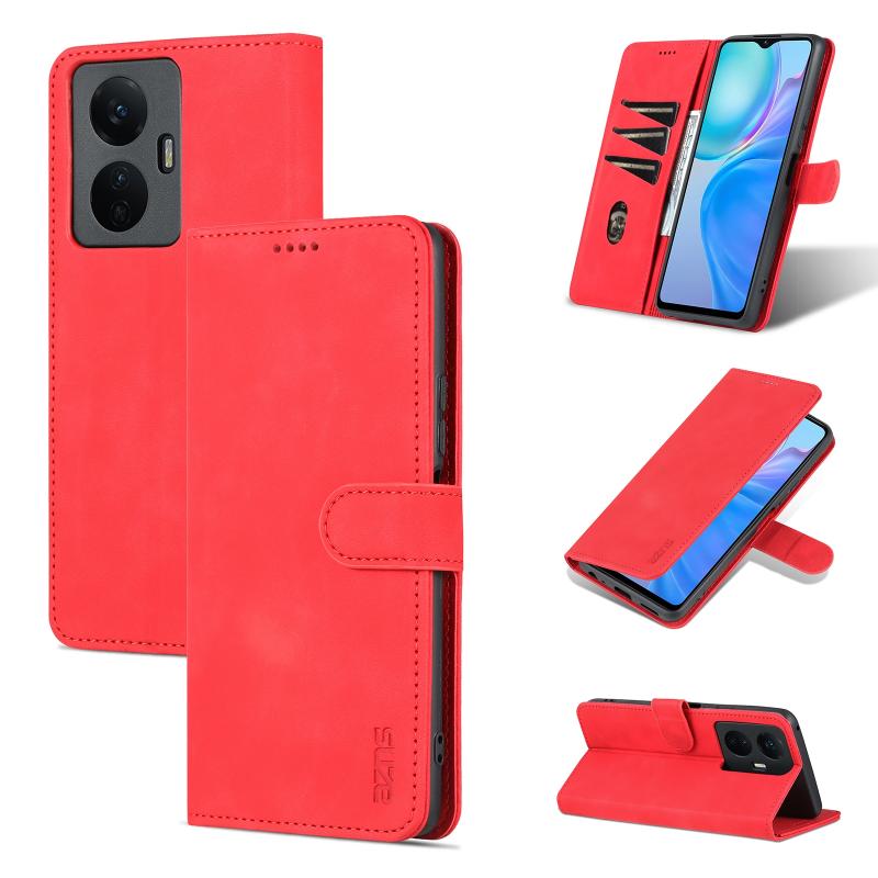 Θήκη τηλεφώνου δερμάτινη, οριζόντια αναδιπλούμενη για vivo Y77e/Y77 5G Global, με υφή δέρματος μοσχαριού και αίσθηση AZNS (Κόκκινη)