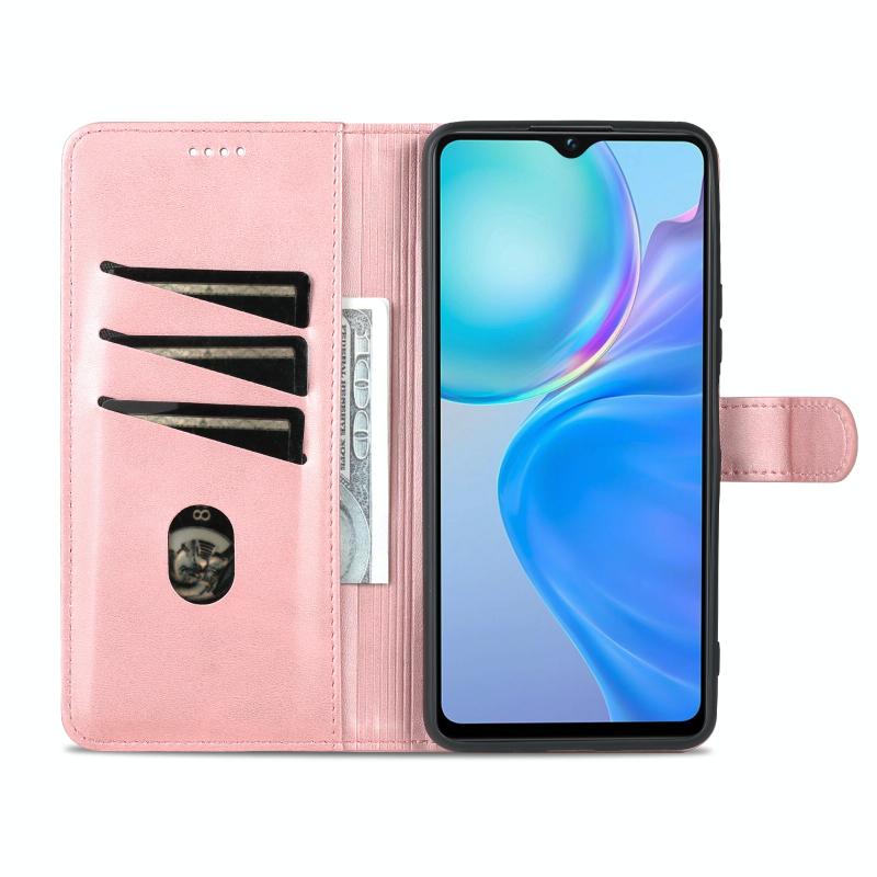 Θήκη τηλεφώνου δερμάτινη, οριζόντια αναδιπλούμενη για vivo Y77e/Y77 5G Global, με υφή δέρματος μοσχαριού και αίσθηση AZNS (Κόκκινη)