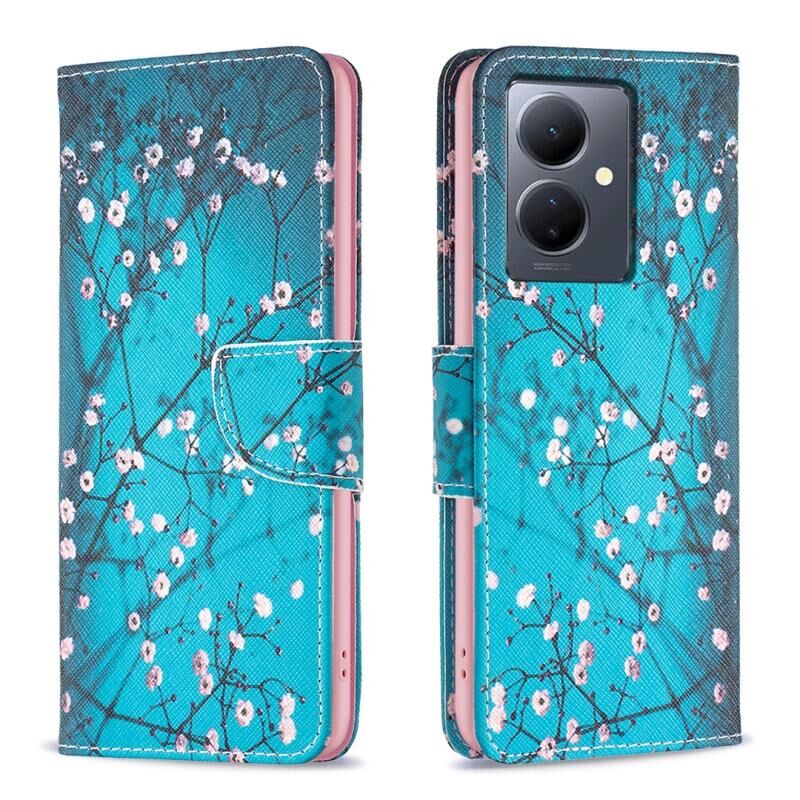 Θήκη τηλεφώνου από δέρμα με έγχρωμο σχέδιο για vivo Y78 5G (Λουλούδι Δαμασκηνιάς)