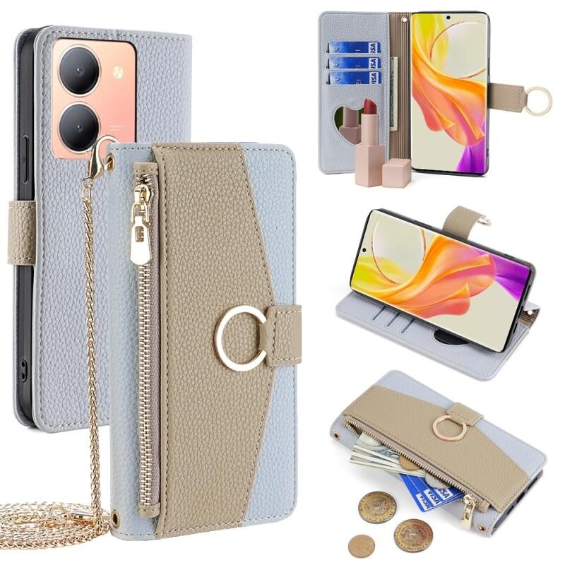 For vivo Y78 5G Crossbody Litchi Texture Leather Phone Case(Blue)