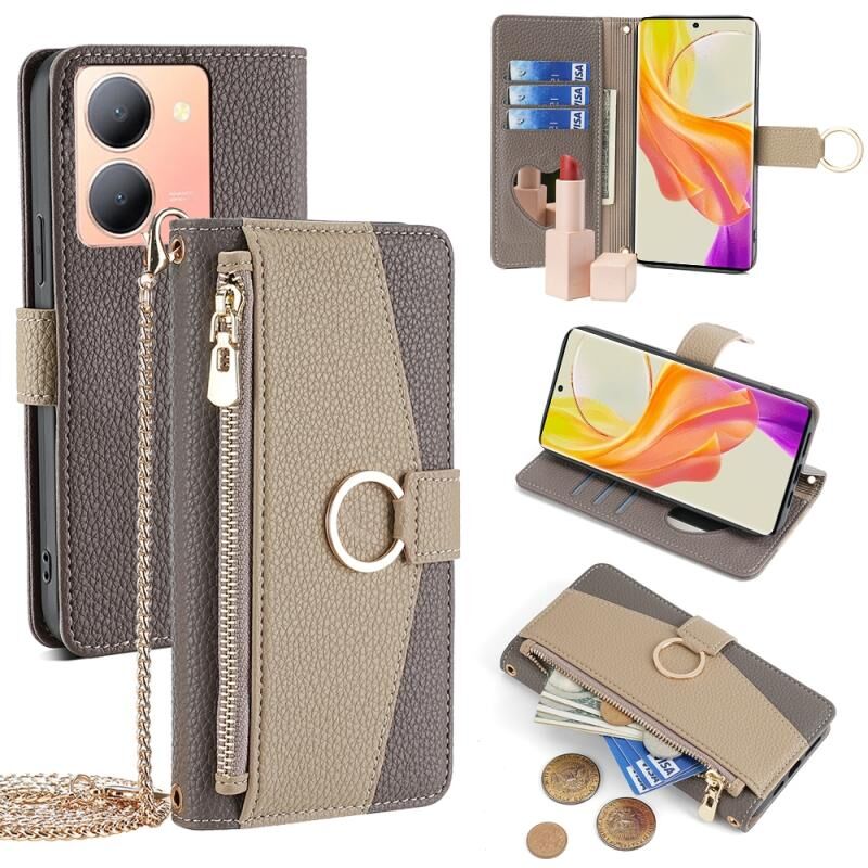 For vivo Y78 5G Crossbody Litchi Texture Leather Phone Case(Grey)