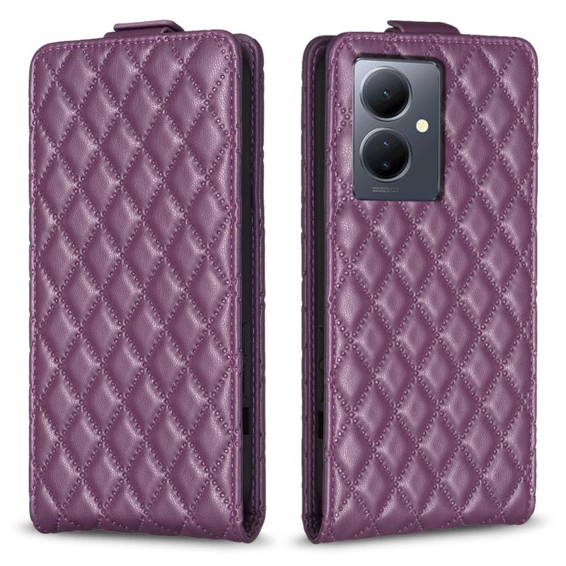For vivo Y78 5G Diamond Lattice Vertical Flip Leather Phone Case(Dark Purple)