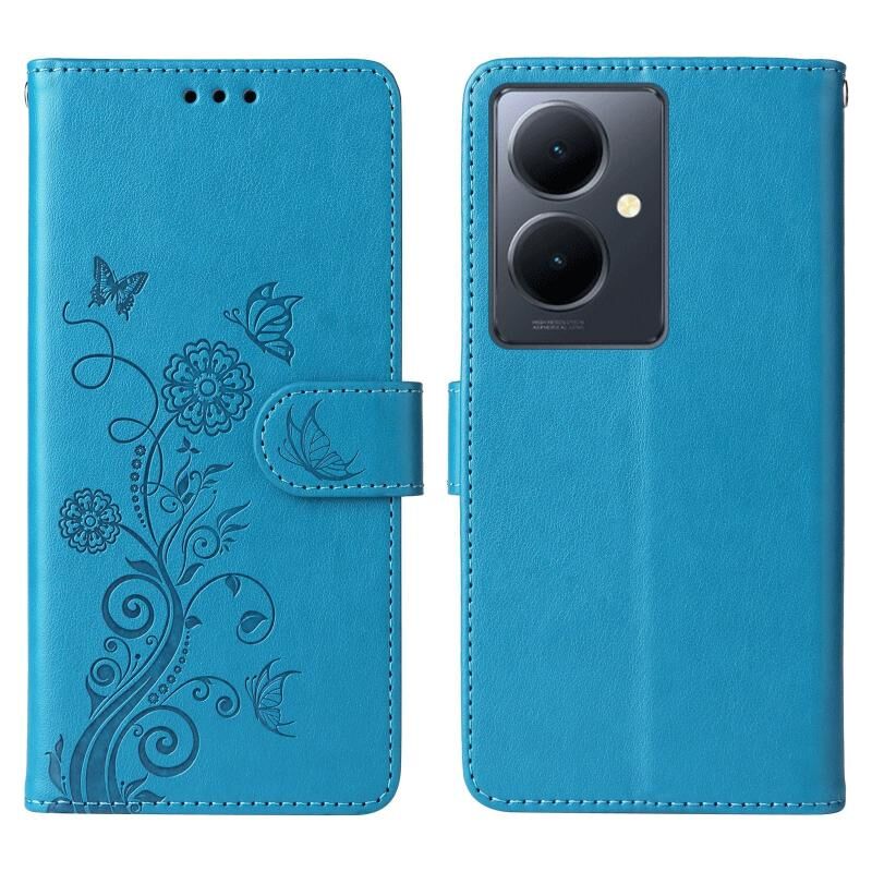 Θήκη τηλεφώνου από δέρμα με ανάγλυφα σχέδια πεταλούδας και λουλουδιών για vivo Y78 5G Global (Μωβ)