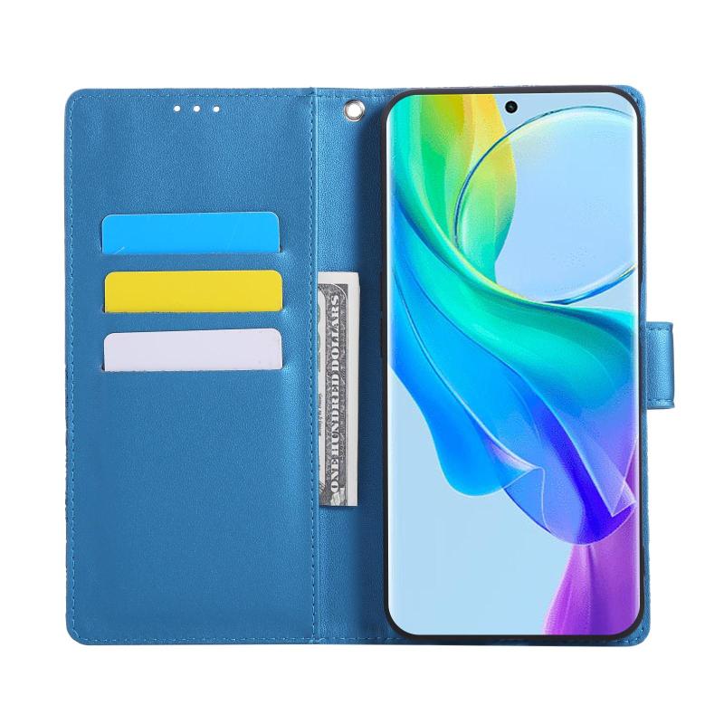For vivo Y78 5G Global Rose Flower Embossed 3-Card Slots Leather Phone Case(Blue)