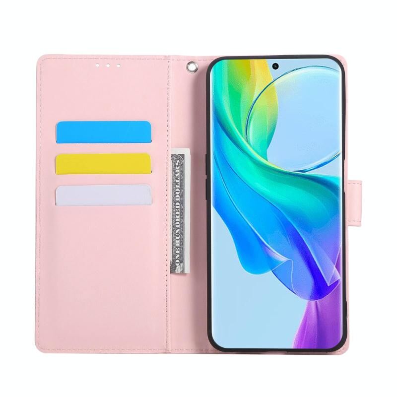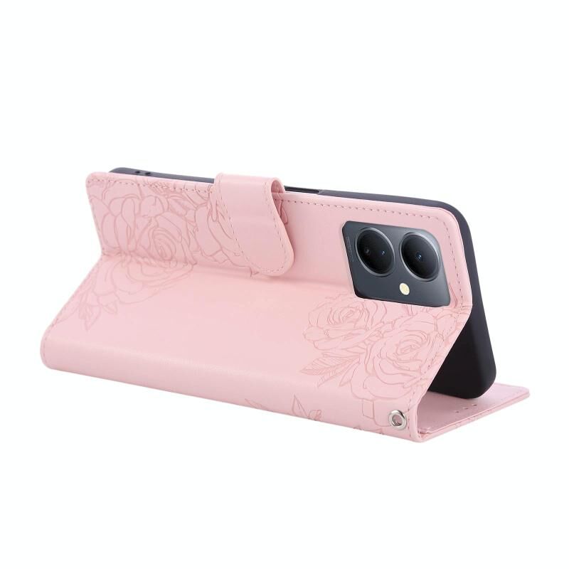 For vivo Y78 5G Global Rose Flower Embossed 3-Card Slots Leather Phone Case(Pink)