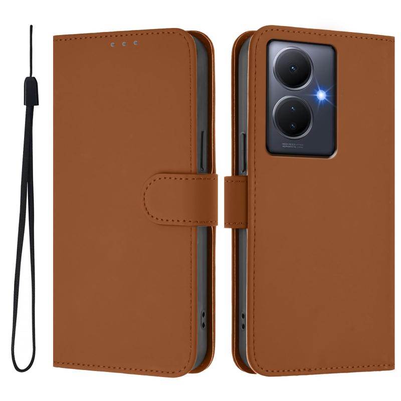 For vivo Y78 5G Global / V29 Lite Skin Feel Solid Color Leather Phone Case with Lanyard(Brown)