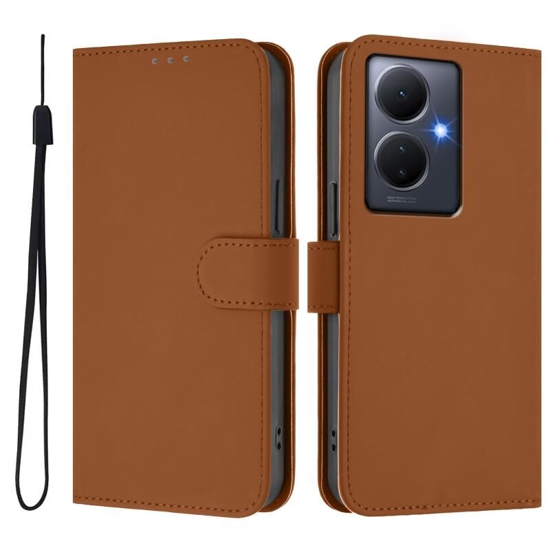 Θήκη τηλεφώνου από δέρμα με αίσθηση, συμπαγές χρώμα για vivo Y78 5G Global / V29 Lite με κορδόνι (Καφέ)
