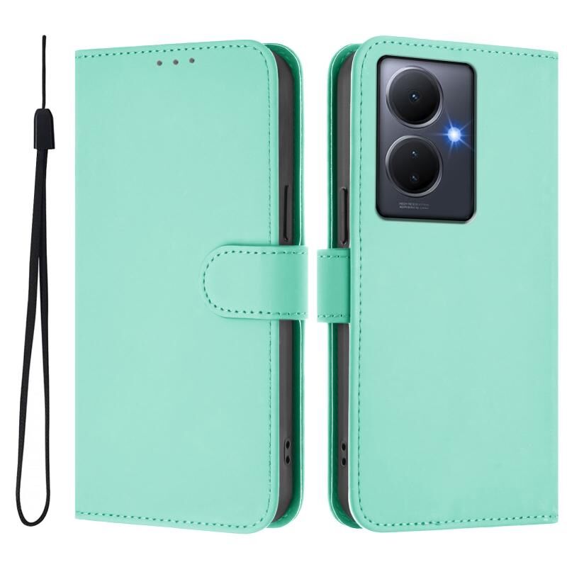 Θήκη τηλεφώνου από δέρμα με αίσθηση, συμπαγές χρώμα για vivo Y78 5G Global / V29 Lite με κορδόνι (Καφέ)