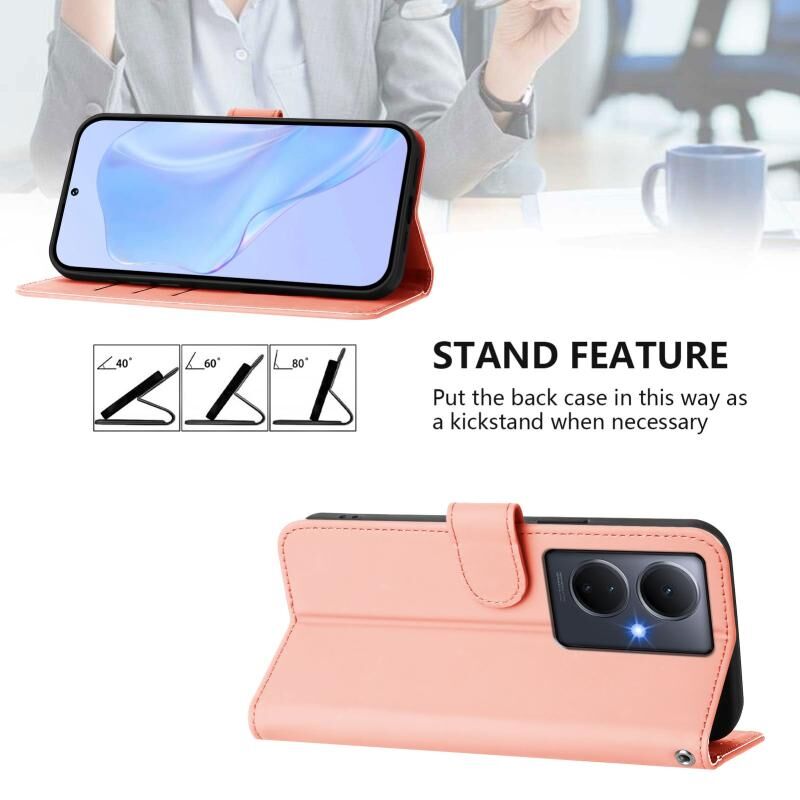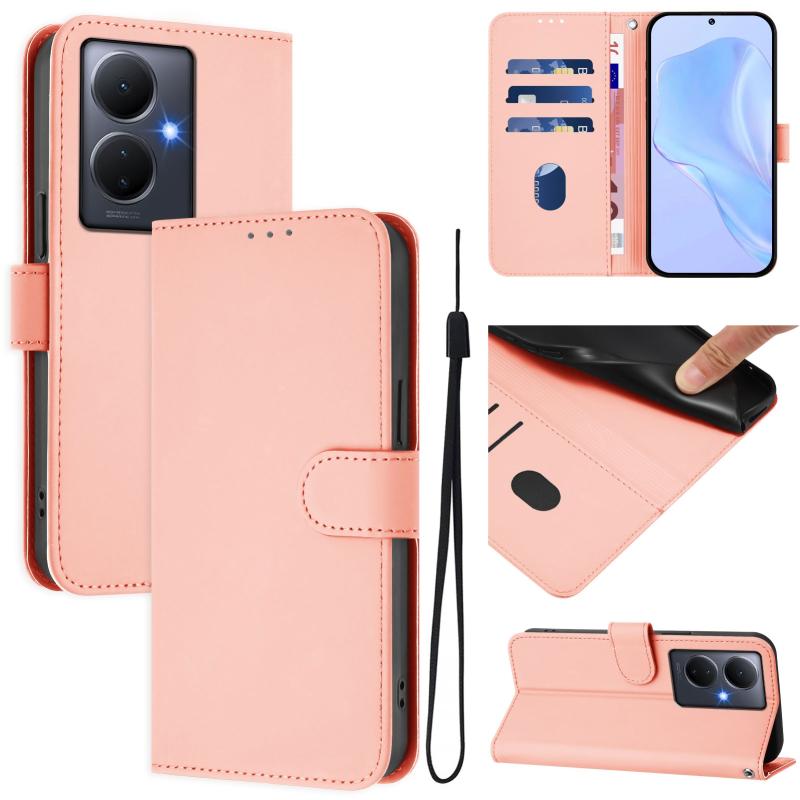 Θήκη τηλεφώνου από δέρμα με αίσθηση, συμπαγές χρώμα για vivo Y78 5G Global / V29 Lite με κορδόνι (Καφέ)