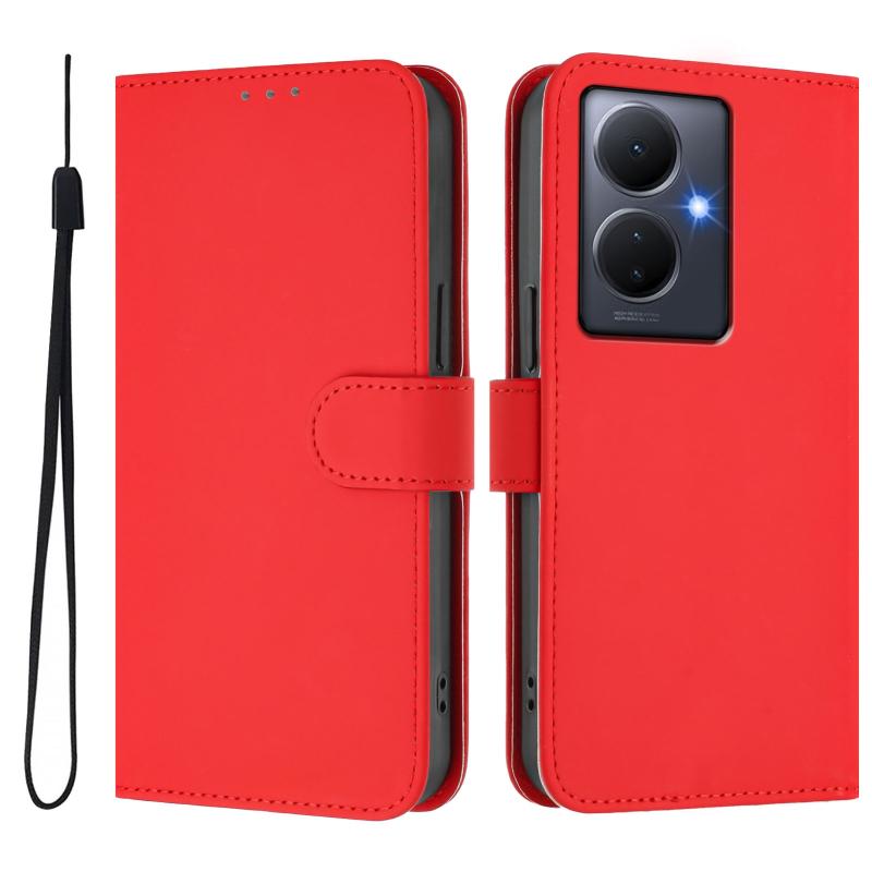 For vivo Y78 5G Global / V29 Lite Skin Feel Solid Color Leather Phone Case with Lanyard(Red)
