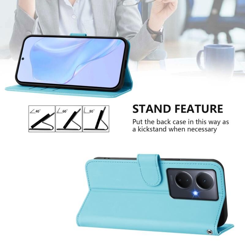 Θήκη τηλεφώνου από δέρμα με αίσθηση, συμπαγές χρώμα για vivo Y78 5G Global / V29 Lite με κορδόνι (Καφέ)