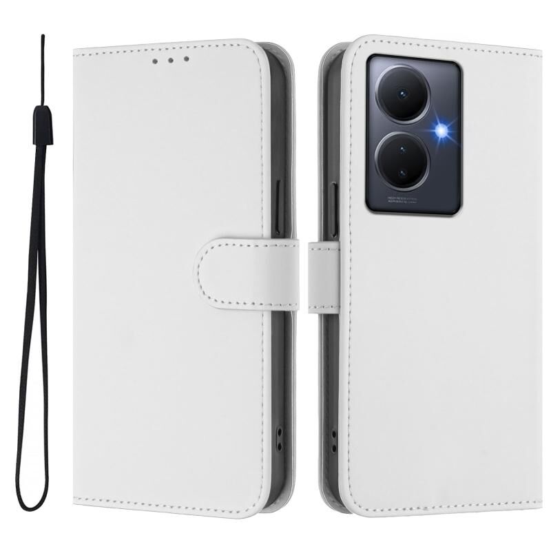 Θήκη τηλεφώνου από δέρμα με αίσθηση, συμπαγές χρώμα για vivo Y78 5G Global / V29 Lite με κορδόνι (Καφέ)
