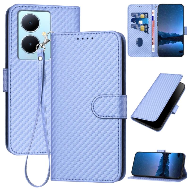 Θήκη τηλεφώνου από δέρμα με κούμπωμα από ανθρακονήματα και λουρί για vivo Y78+ 5G Global YX0070 (Κόκκινο)