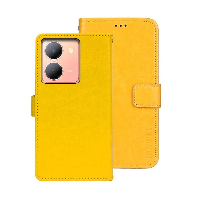 Θήκη τηλεφώνου από δέρμα Crazy Horse υφής για vivo Y78 5G idewei (Λευκό) (Κίτρινο)