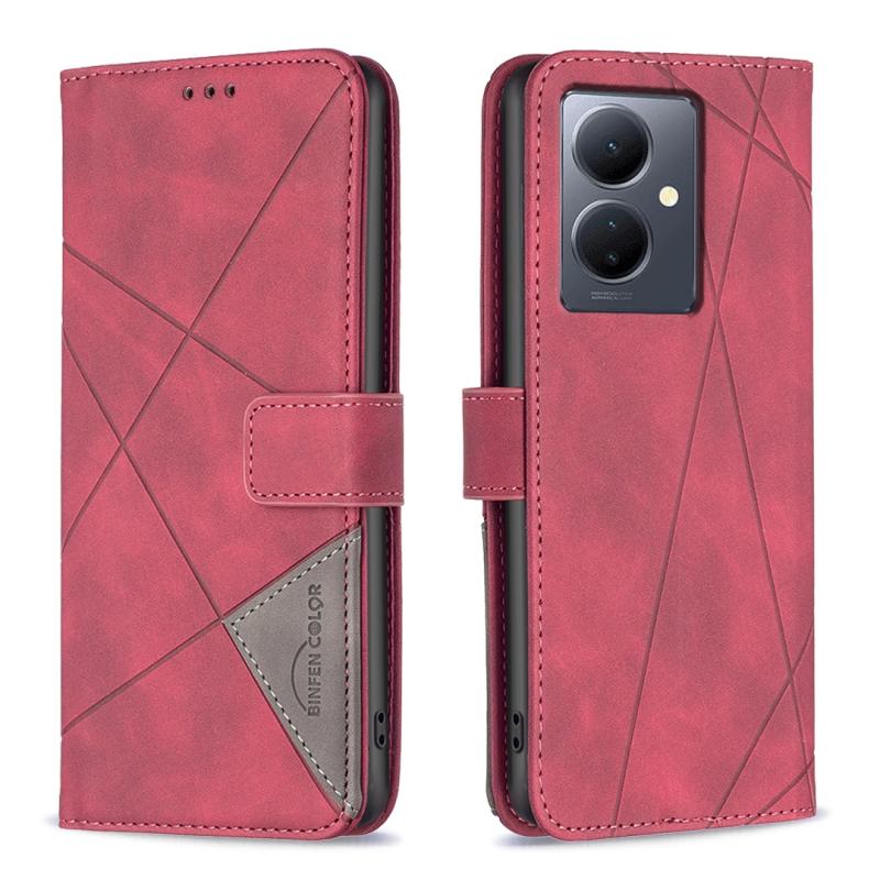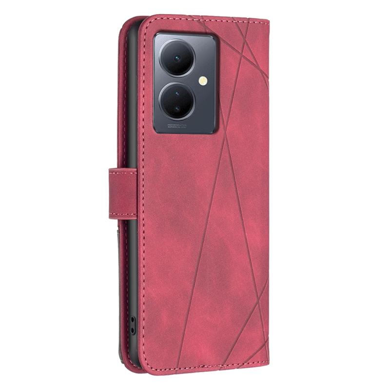 For vivo Y78 5G Magnetic Buckle Rhombus Texture Leather Phone Case(Red)
