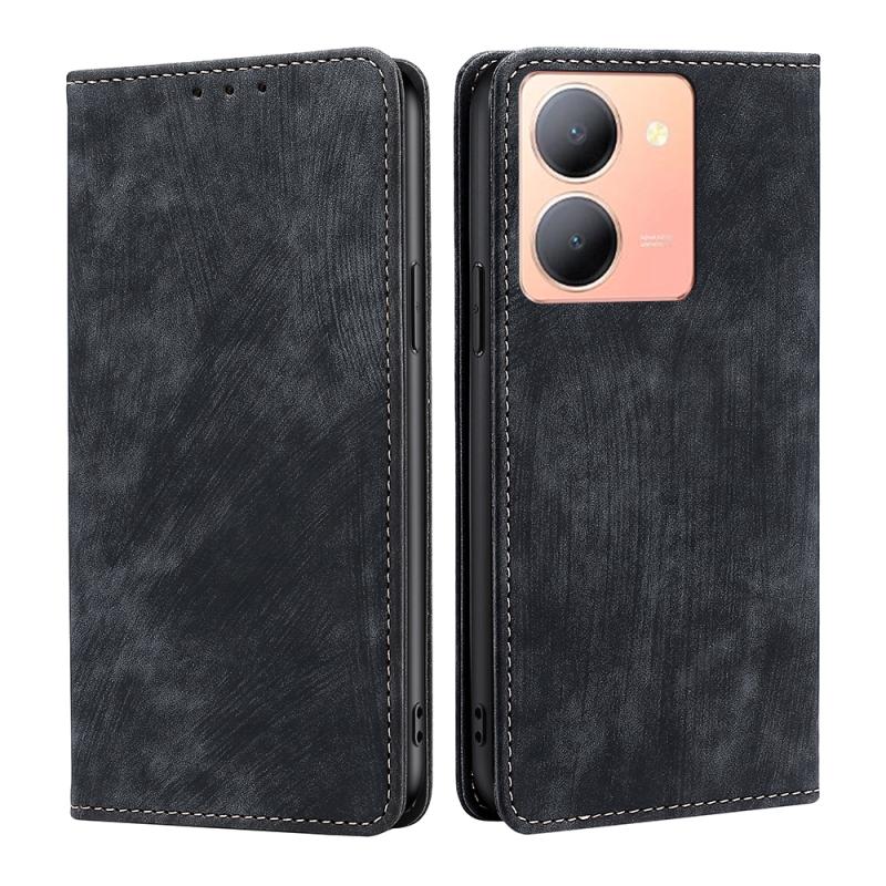 For vivo Y78 5G RFID Anti-theft Brush Magnetic Leather Phone Case(Black)
