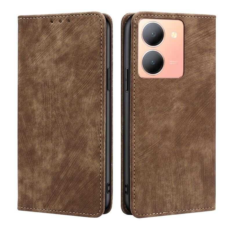For vivo Y78 5G RFID Anti-theft Brush Magnetic Leather Phone Case(Brown)