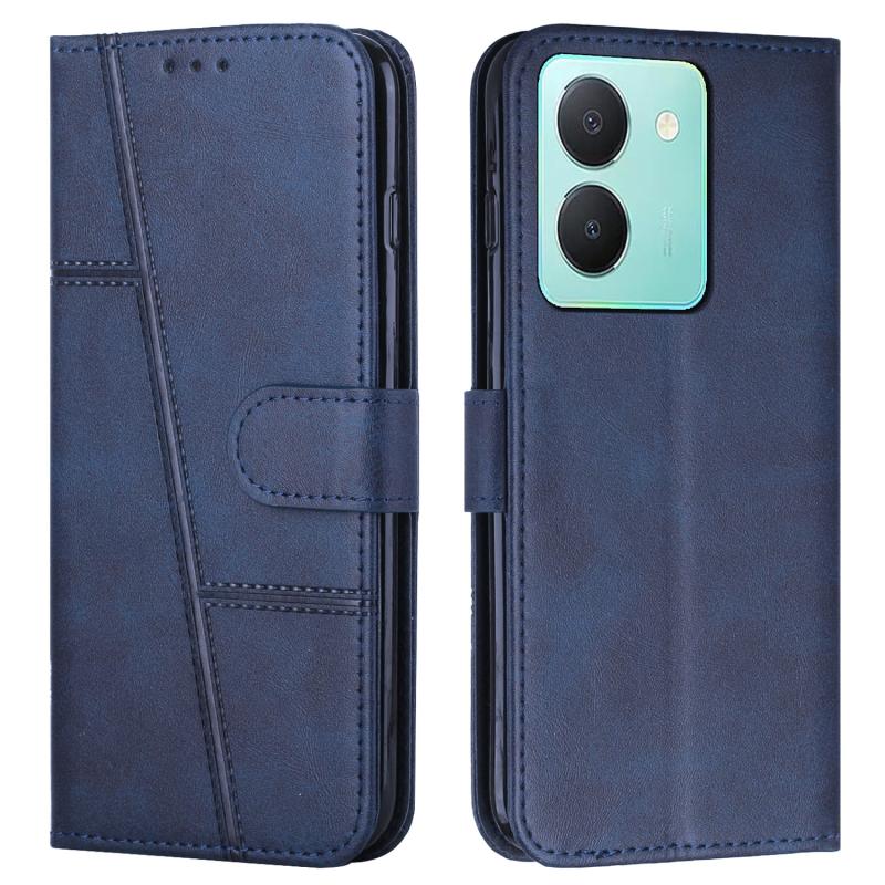For vivo Y78 5G / Y36 Stitching Calf Texture Buckle Leather Phone Case(Blue)
