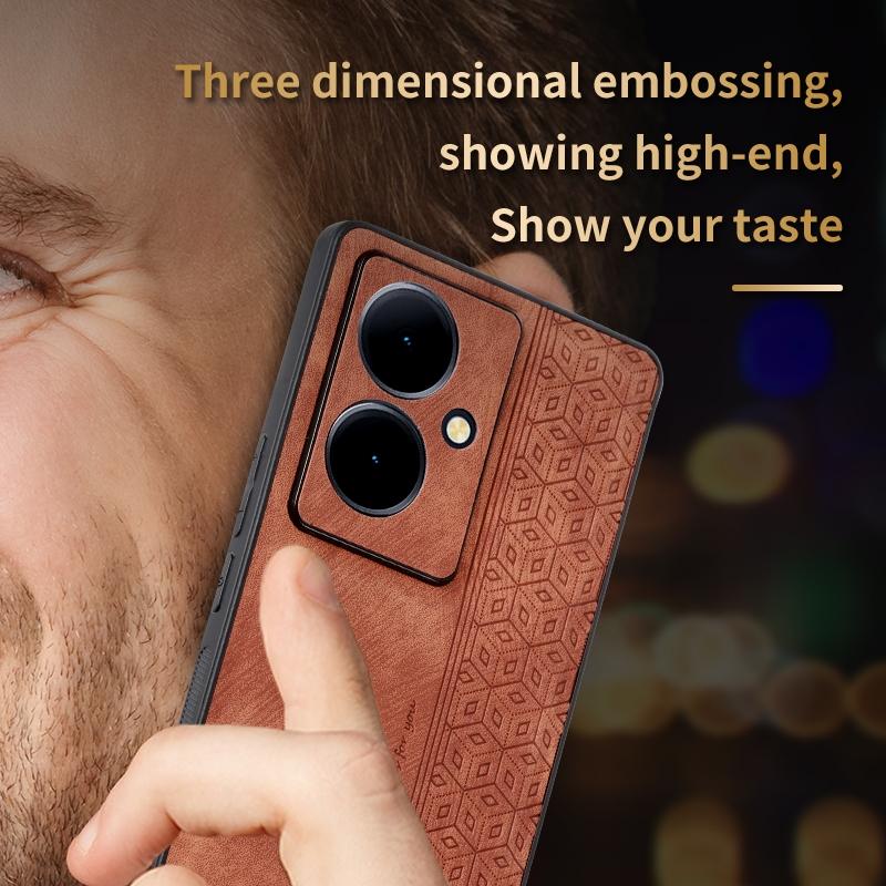 Θήκη τηλεφώνου με ανάγλυφη υφή δέρματος για vivo Y78+ AZNS 3D (Καφέ) (Μαύρο)