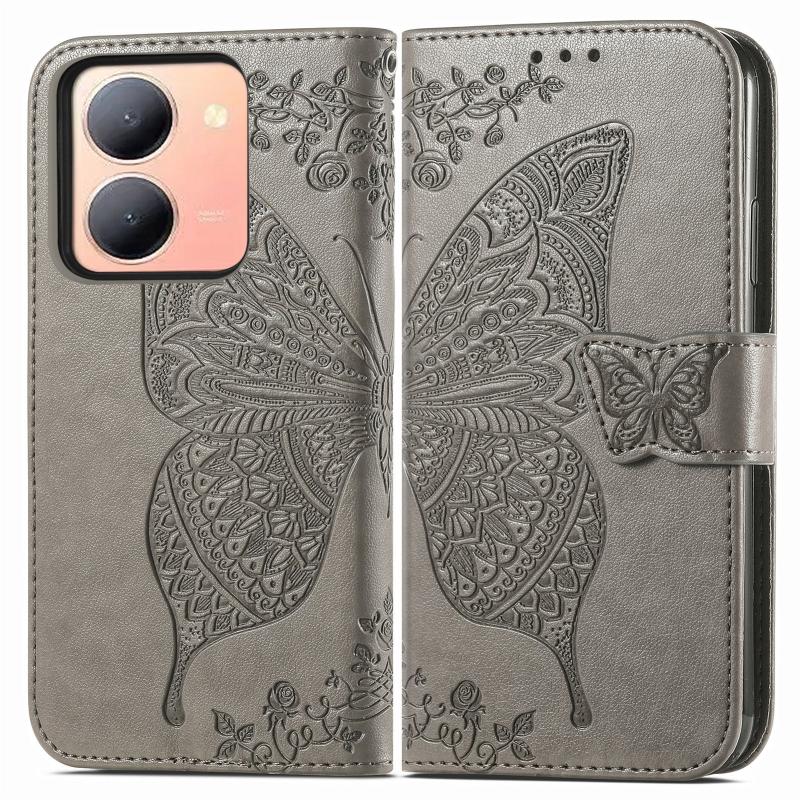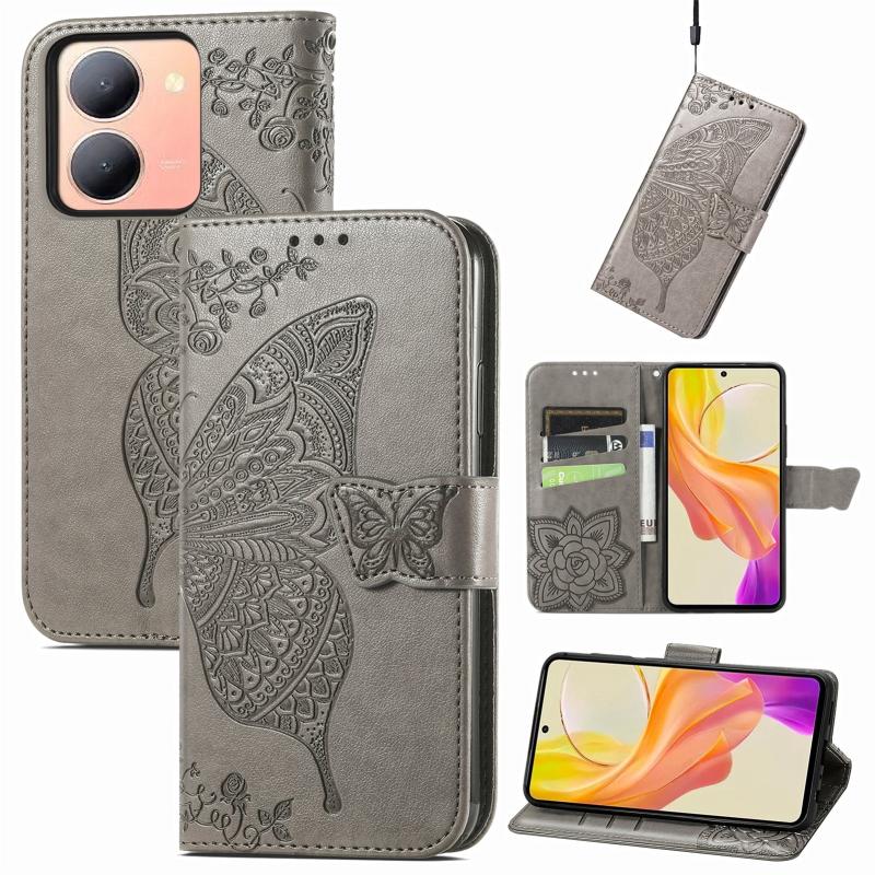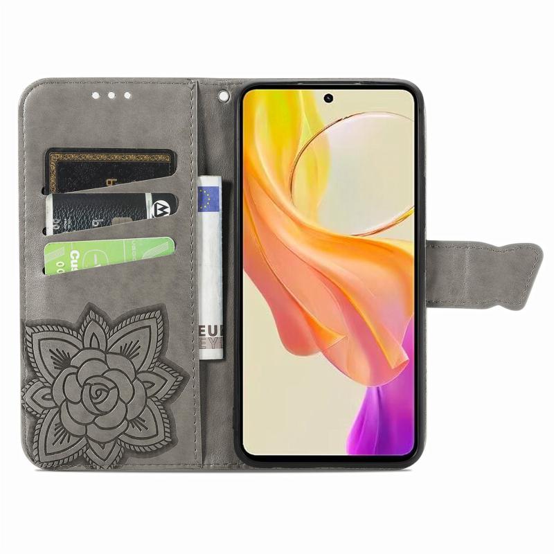 For vivo Y78 Butterfly Love Flower Embossed Leather Phone Case(Gray)