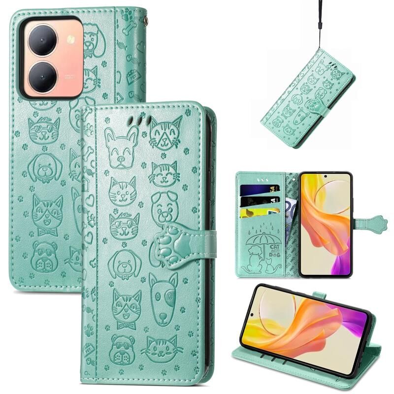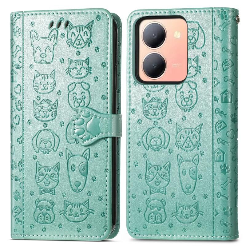 Θήκη τηλεφώνου από δέρμα με ανάγλυφο σχέδιο γάτας και σκύλου για vivo Y78 (Χρυσορόδινο)
