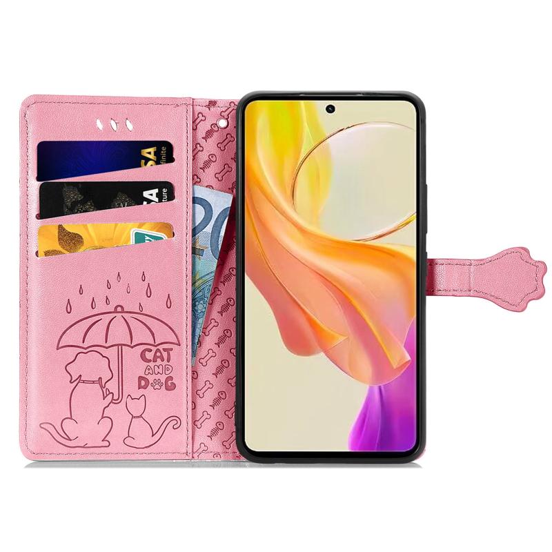 For vivo Y78 Cat and Dog Embossed Leather Phone Case(Pink)