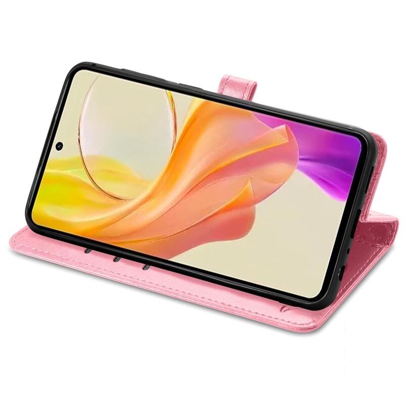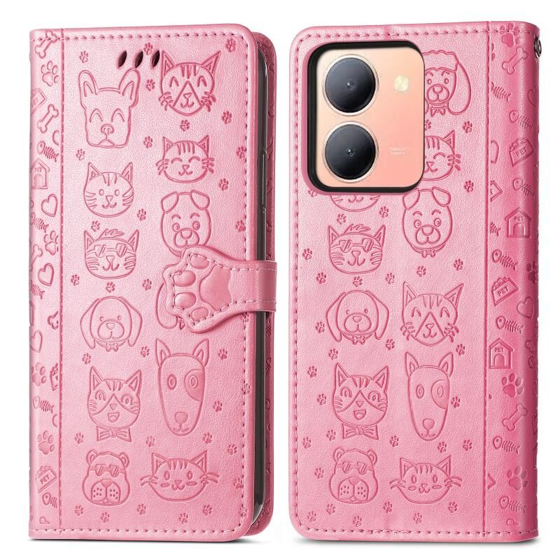 Θήκη τηλεφώνου από δέρμα με ανάγλυφο σχέδιο γάτας και σκύλου για vivo Y78 (Χρυσορόδινο)