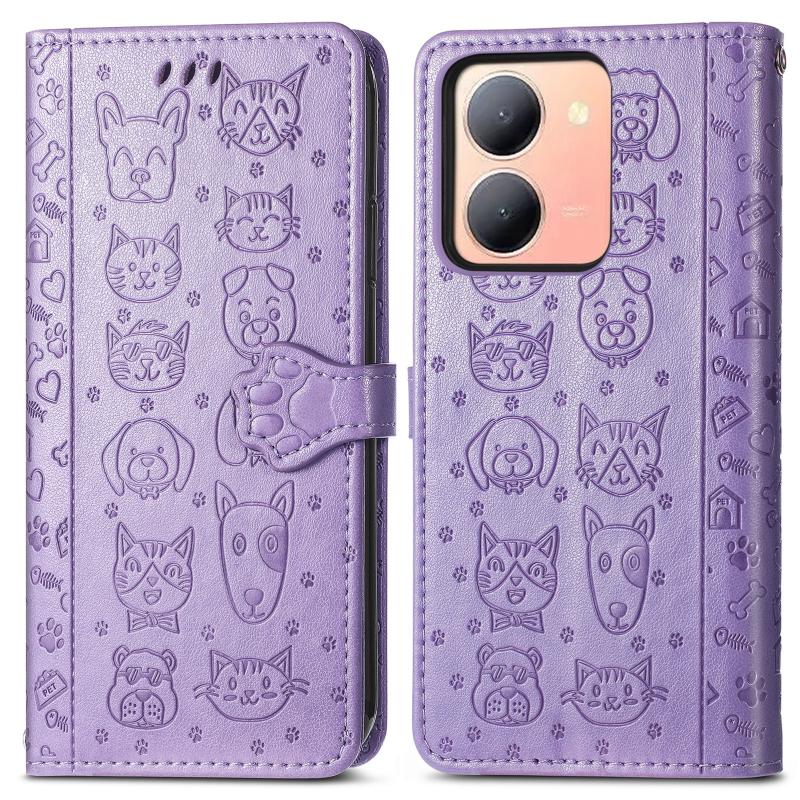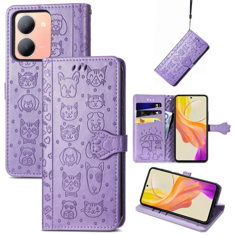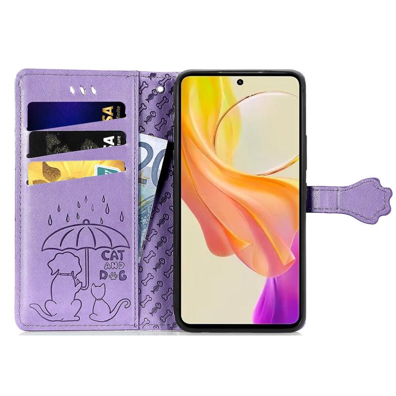 For vivo Y78 Cat and Dog Embossed Leather Phone Case(Purple)