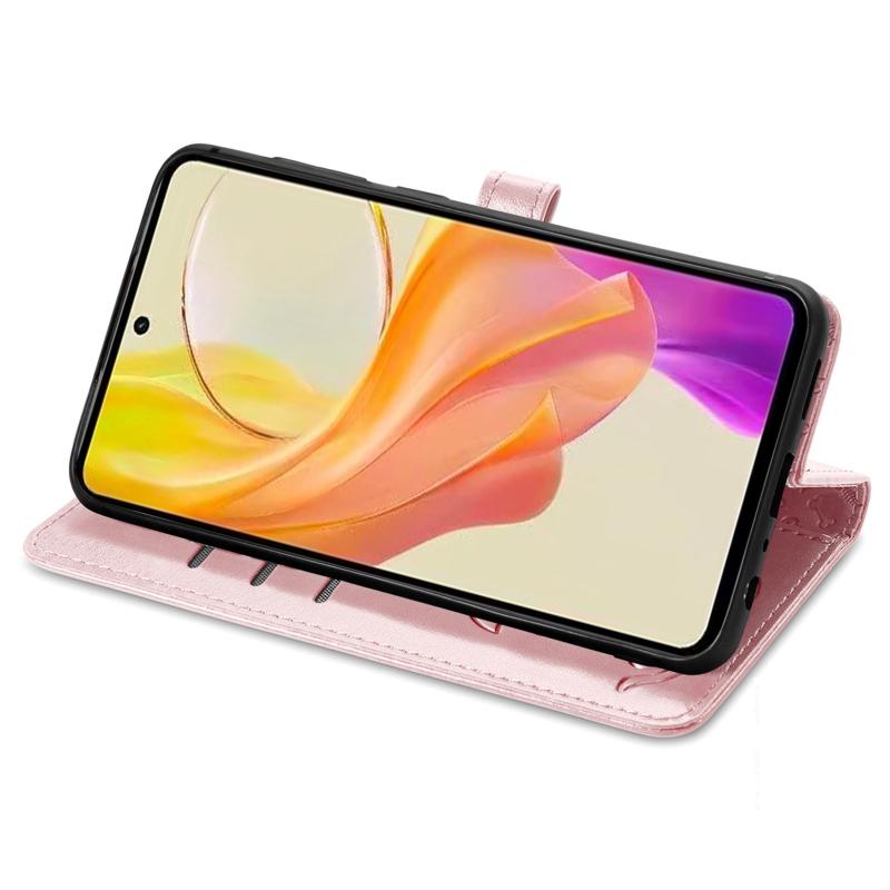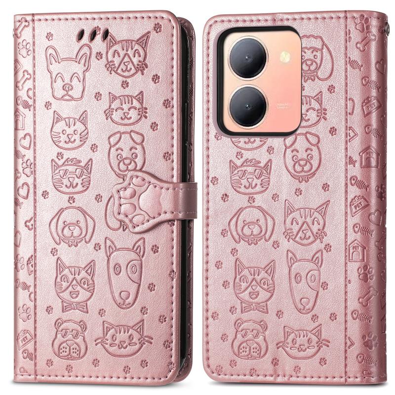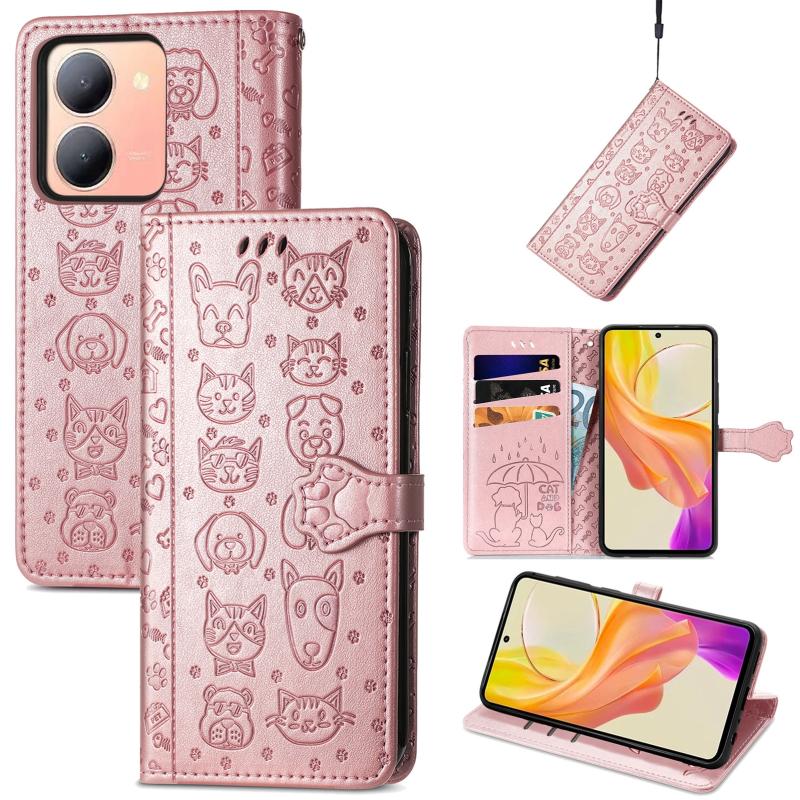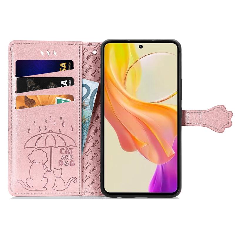 For vivo Y78 Cat and Dog Embossed Leather Phone Case(Rose Gold)