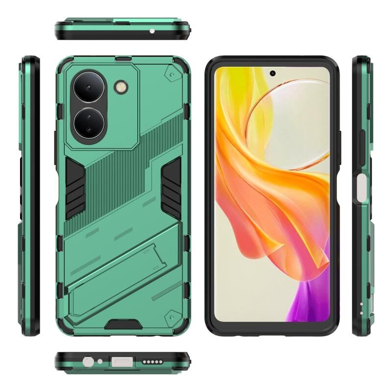 Θήκη κινητού τηλεφώνου 2 σε 1 PC + TPU Punk Armor για vivo Y78 Global (Μαύρο) με βάση στήριξης. (πράσινο)