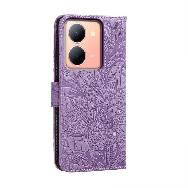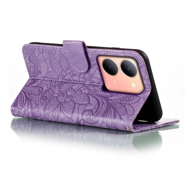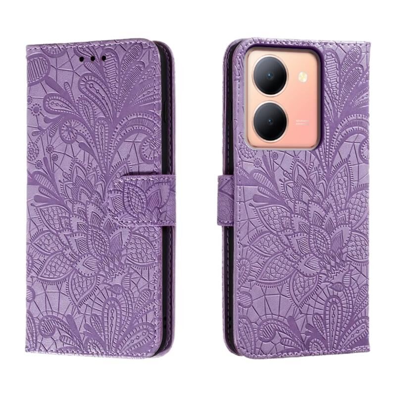 Για vivo Y78 Lace λουλούδι ανάγλυφο Flip υπόθεση τηλεφώνου δέρμα (Μωβ)