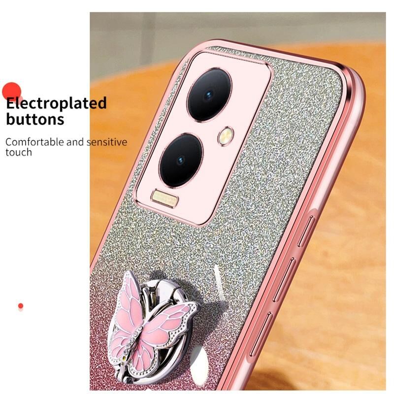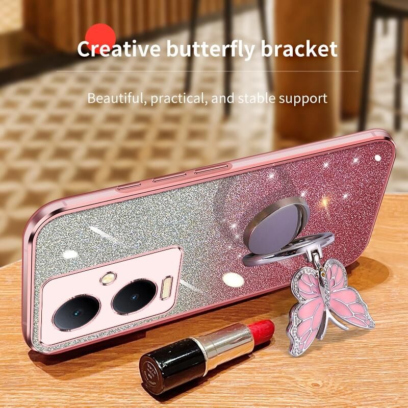 Για το vivo Y78 + Επιμεταλλωμένο διαβάθμιση Glitter πεταλούδα κάτοχος TPU τηλέφωνο υπόθεση (μαύρο)
