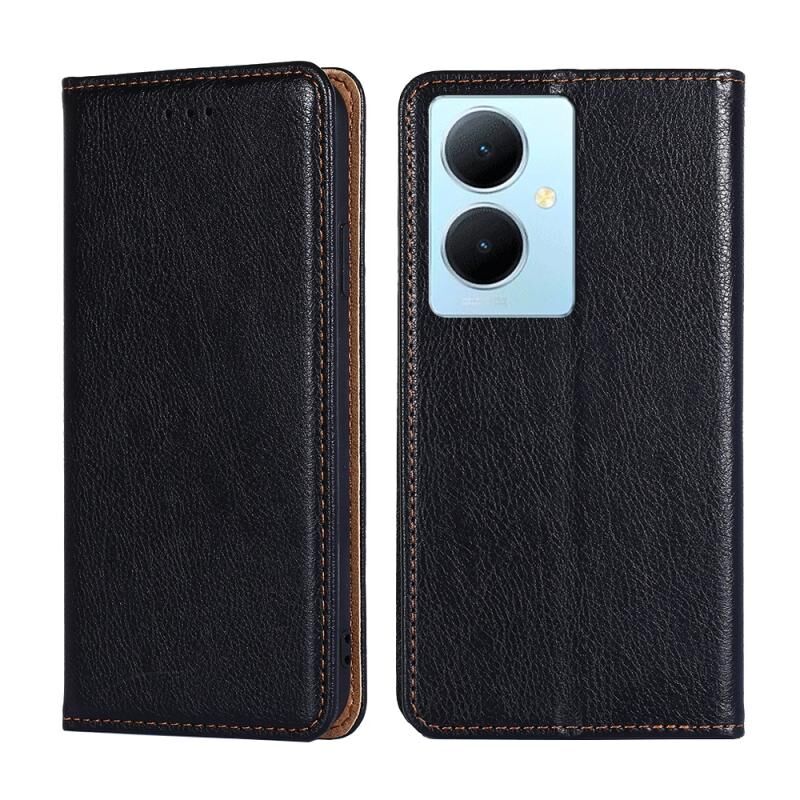 Για το vivo Y78 Plus 5G Gloss Oil Solid Color Μαγνητική δερμάτινη θήκη τηλεφώνου (μαύρο)