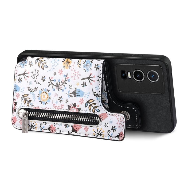 Για vivo Y78 Ρετρό ζωγραφισμένο φερμουάρ πορτοφόλι πίσω υπόθεση τηλεφώνου (μαύρο)
