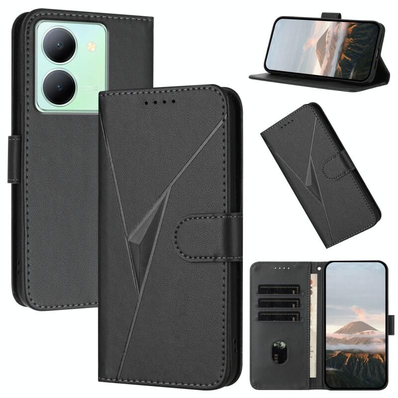 Για vivo Y78 Τρίγωνο μοτίβο αγκράφα κούμπωμα δερμάτινη θήκη τηλεφώνου (μαύρο)