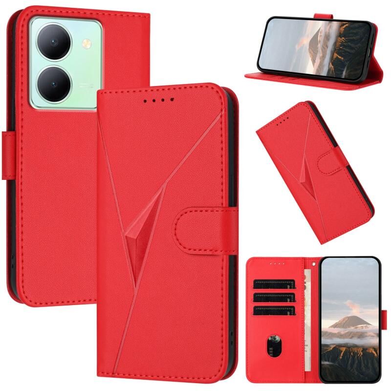 Για vivo Y78 Τρίγωνο μοτίβο αγκράφα κούμπωμα δερμάτινη θήκη τηλεφώνου (κόκκινο)