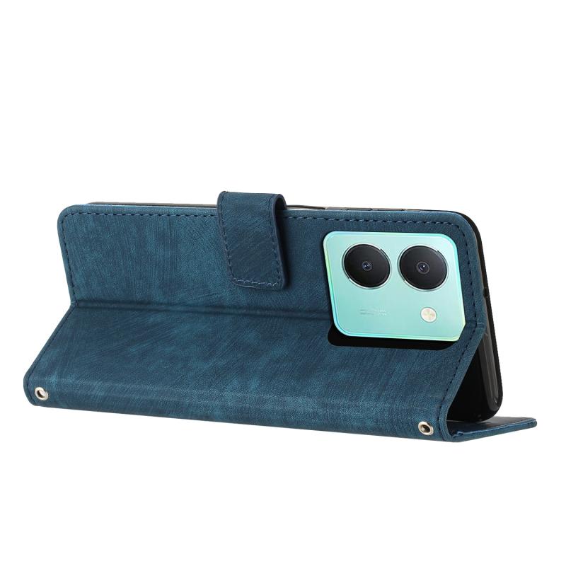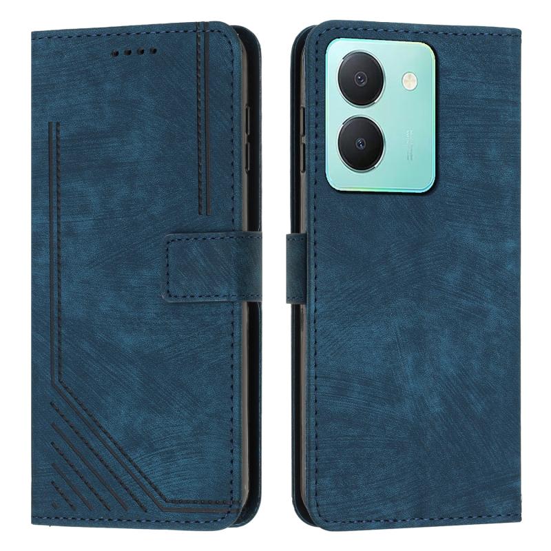 For vivo Y78 / vivo Y36 Skin Feel Stripe Pattern Leather Phone Case with Lanyard(Blue)